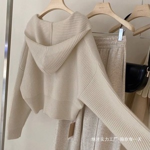 奶fufu连帽软糯毛衣外套女早秋设计感小众短款慵懒针织开衫上衣厚
