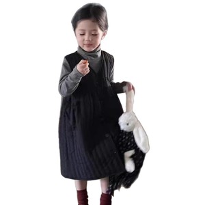 韩版童装女童夹棉连衣裙秋冬款洋气灰色堆堆领打底衫爆款套装外穿