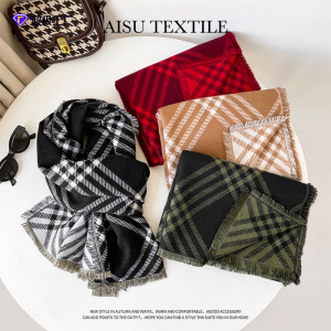 百搭高级感格子围巾经典英伦格子女秋冬仿羊绒加厚保暖围巾大披肩