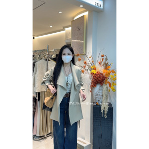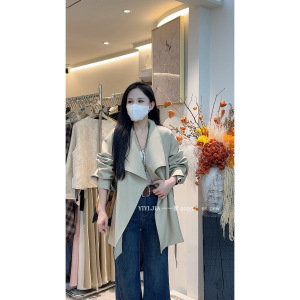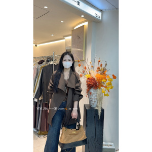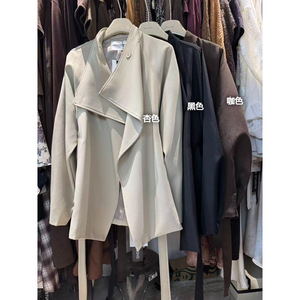 一一家 YIYIJIA-秋上新气质翻领中长款时尚风衣(配腰带)889021