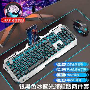 金属机械手感-游戏-银黑色冰蓝光【豪华升级版】+机械鼠标-否-104键-标配