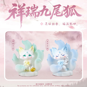 国潮古风九尾狐系列祥瑞九尾狐盲盒创意玄关桌面摆件节日礼物批发