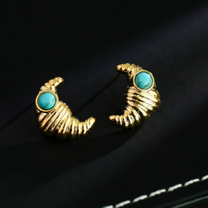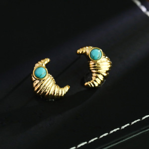 牛角包镀18K金耳环女绿松石耳饰欧美轻奢几何耳钉跨境专供热销款