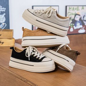 头层牛皮饼干鞋女2025秋季新款时尚真皮超轻厚底多巴胺色休闲板鞋