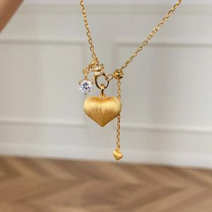 中古金色拉丝爱心吊坠项链女轻奢高级感锁骨链时尚气质百搭毛衣链