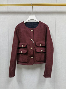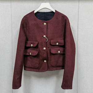 法式小众25秋冬新两面穿圆领夹克羊毛手工双面呢短款外套女