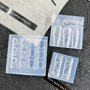 欧式美杜莎高透美甲边框装饰蛇皮祥云浮雕指甲装饰模DIY雕花胶模