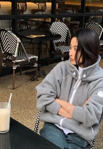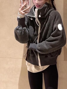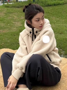高版本鹅风logo臂章车章羊毛双面抓绒双头拉链连帽外套夹克上衣女