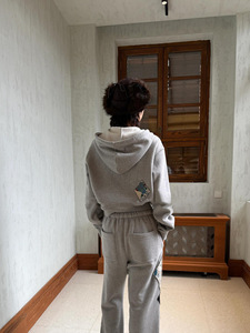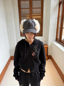 南油品质25SS秋冬新款方格补丁连帽抓绒外套休闲贴布绣卫衣上衣女