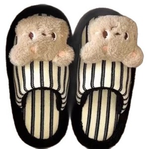 可爱条纹黄油小熊毛毛拖鞋女外穿2025秋冬新款时尚百搭包头棉拖鞋