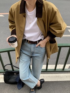 莉贝琳sisy英国外套女2025秋季新款撞色小落肩巴恩风宽松休闲夹克