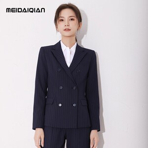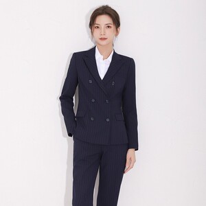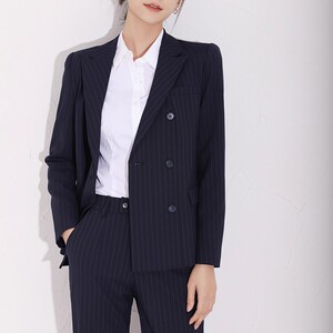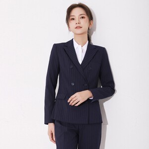 双排扣西装套装女修身条纹职业正装精英白领商务工装春秋季西服