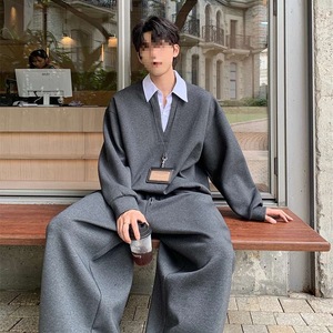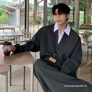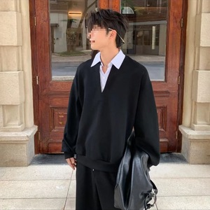秋季上新高品质宽松型时尚简约休闲轻奢男士假两件卫衣套装棉