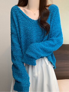 白色V领长袖针织衫女秋季小个子穿搭短款上衣宽松慵懒风内搭毛衣
