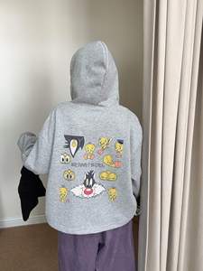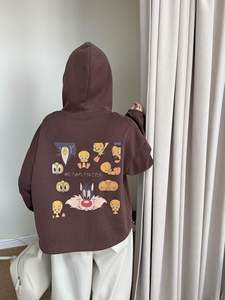 韩代崔迪后背印花连帽抽绳外套女秋季新款卡通宽松休闲长袖上衣