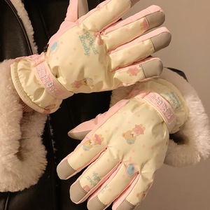 可爱粉色小熊滑雪手套女冬季可触屏加绒防水保暖2024防风骑行户外