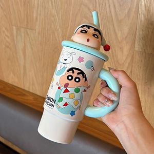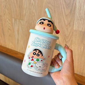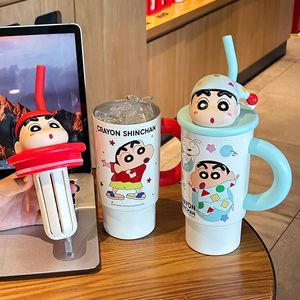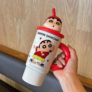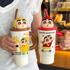 蜡笔小新水杯联名款女生高颜值可爱保温杯新款吸管冰霸杯子办公室