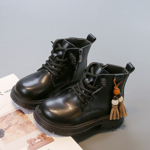 儿童英伦风马丁靴2025年春秋爆款纯色男童皮面短靴时尚女宝宝单鞋