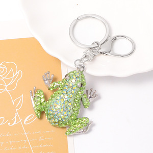 跨境爆款青蛙创意钥匙扣小挂件水钻金属教师节礼物钥匙扣环圈批发