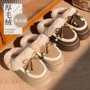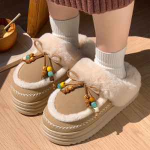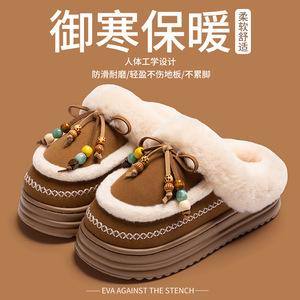 冬季袋鼠轻盈保暖防滑棉拖鞋民族风设计防滑柔软居家室内棉鞋