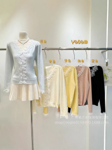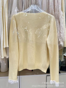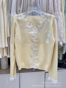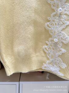 洋气v领针织开衫蕾丝花边打底衫女秋冬新款宽松遮肉毛衣洋气上衣
