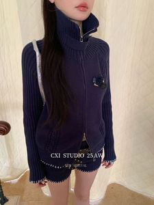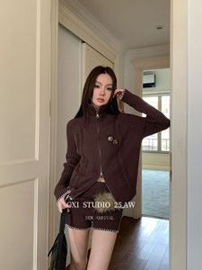 CXI 韩系秋季拉链开衫针织外套休闲短裤两件套小众毛织上衣裤套装