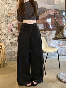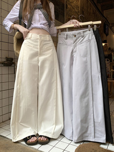 实拍慵懒感休闲裤女高腰复古纯色直筒裤宽松阔腿裤垂感拖地裤长裤