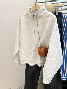 早秋2025新款立领半拉链长袖卫衣女薄款韩版宽松慵懒风外套上衣