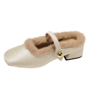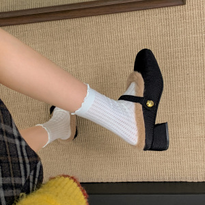 黑色复古包头粗跟毛毛拖鞋女外穿2025新款秋冬百搭增高软底棉拖鞋