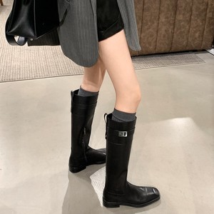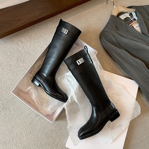 羊皮版~sheii苏茵茵同款赫本锁扣靴~复古金属扣粗跟高筒靴长靴女