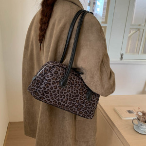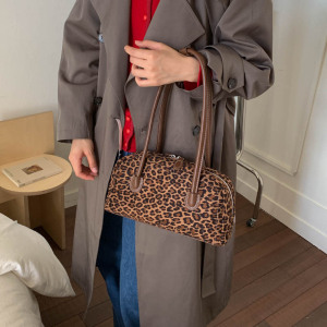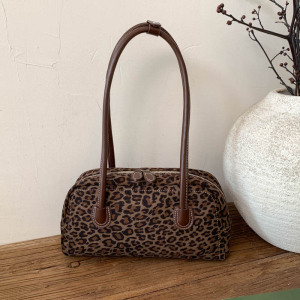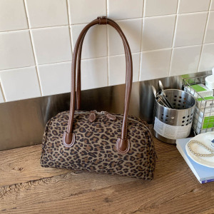 复古高级感腋下包女士手提包2025新款时尚豹纹保龄球包百搭单肩包