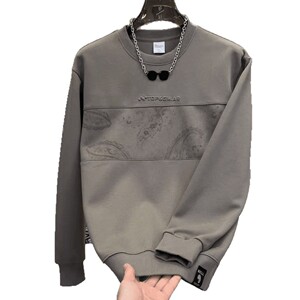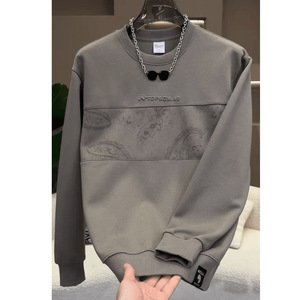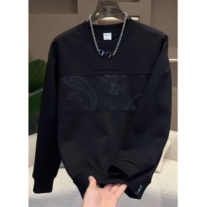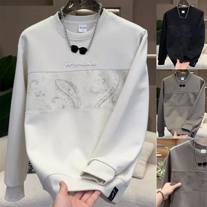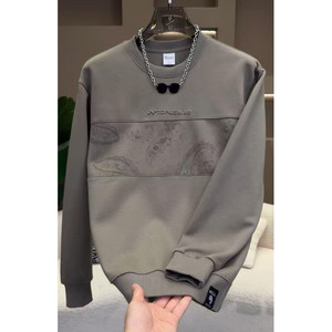2025新款重磅设计男士拼接圆领卫衣时尚潮流印花秋季百搭上衣
