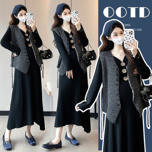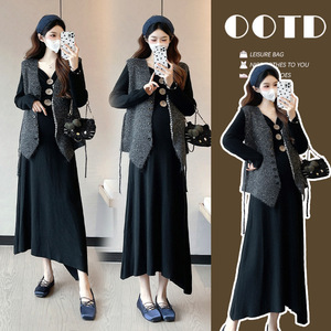 秋冬款小香风孕妇装马甲+连衣裙两件套气质孕妇套装