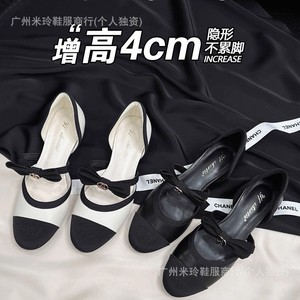 小香新款中空玛丽珍女2025新款厚底内增高法式蝴蝶结复古拼色单鞋
