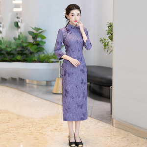 紫色复古新中式改良长袖旗袍女2025秋季新款气质优雅年轻款长款