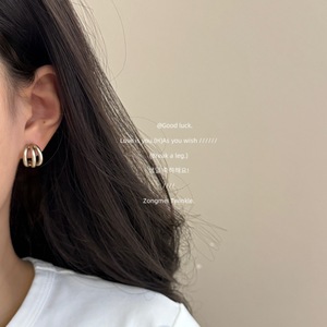 咖啡金小众色系经典圈圈耳环高级感金属线条C型耳环蚊香盘耳夹