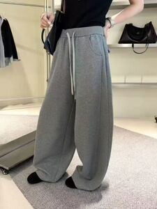 法式复古抽绳松紧腰纯色宽松阔腿裤2025秋季休闲裤松弛感拖地裤