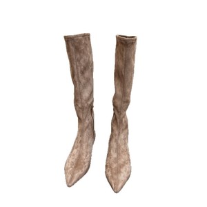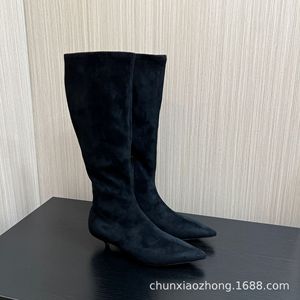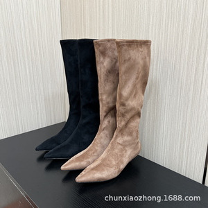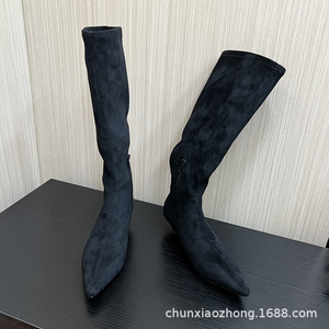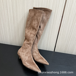 纯源小众25秋冬新款TR时尚尖头麂皮绒侧拉链显瘦高靴猫跟简约长靴