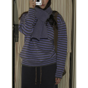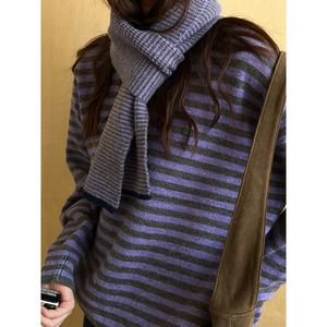 POXFFEE/紫色条纹V领针织衫毛衣女士秋冬新款叠穿搭配内搭打底衫