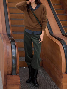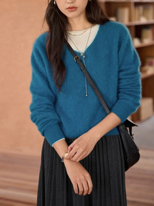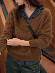solighte 法式羊绒羊毛v领套头针织毛衣女