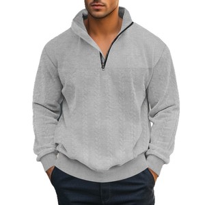 跨境美式秋冬休闲提花长袖男卫衣立领拼接拉链套头宽松重磅卫衣男