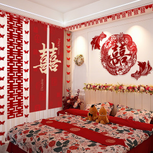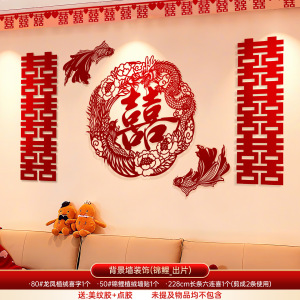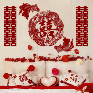 结婚专用超大喜字贴婚房布置卧室客厅背景墙装饰婚礼简约锦鲤囍字