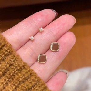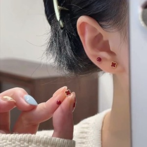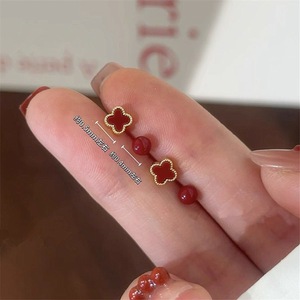 秋冬相思红豆珍珠耳钉女轻奢简约高级感四叶耳饰养耳洞四件套耳环