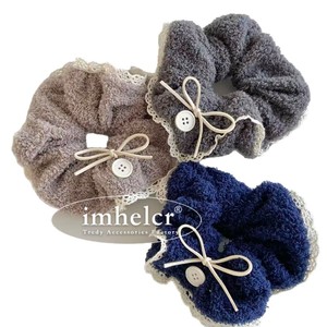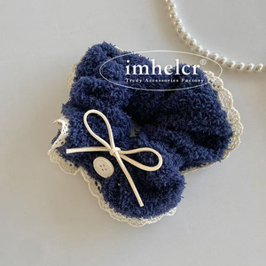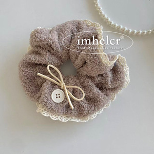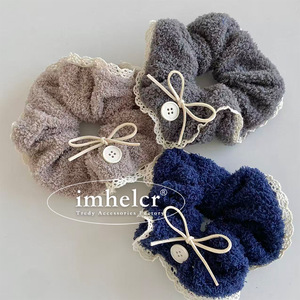 ins温柔羊羔毛绒纽扣蝴蝶结蕾丝边大肠发圈韩系甜美少女秋冬发绳