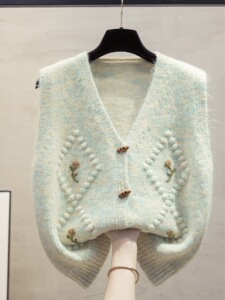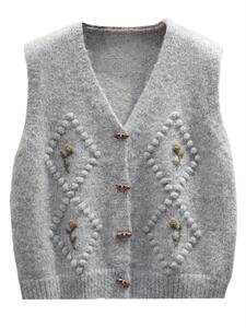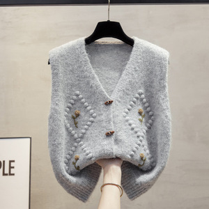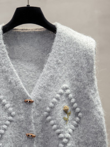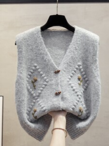 手工花开衫v领针织马甲背心女2025秋冬新款宽松外穿马夹毛衣坎肩