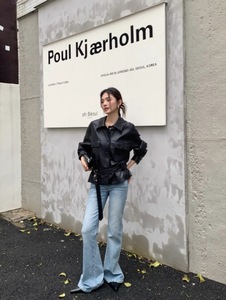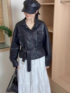 不退换嘉2713翻领系腰带显瘦设计感PU皮衣外套女