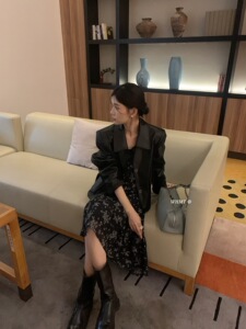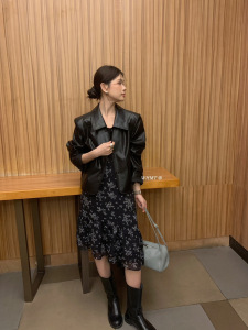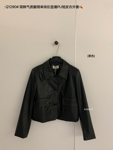 【WOW】简韩气质翻领单排扣显瘦短款皮衣外套女秋季显瘦PU夹克