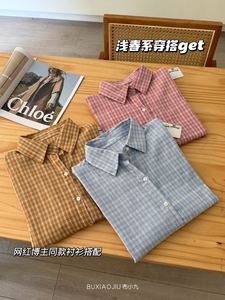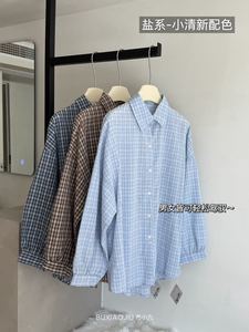布小九秋季韩系格子衬衫2025新款宽松显瘦长袖衬衫叠穿衬衣外套女