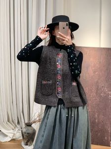 新中式复古盘扣针织面料马甲背心宽松显瘦2025年秋季新款气质时尚