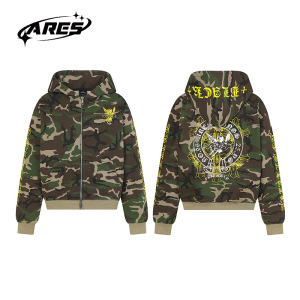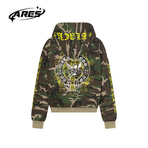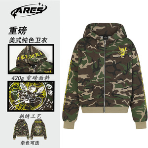 ARES秋季美式重磅cleanfit哥特字母迷彩卫衣连帽帽衫休闲潮流男